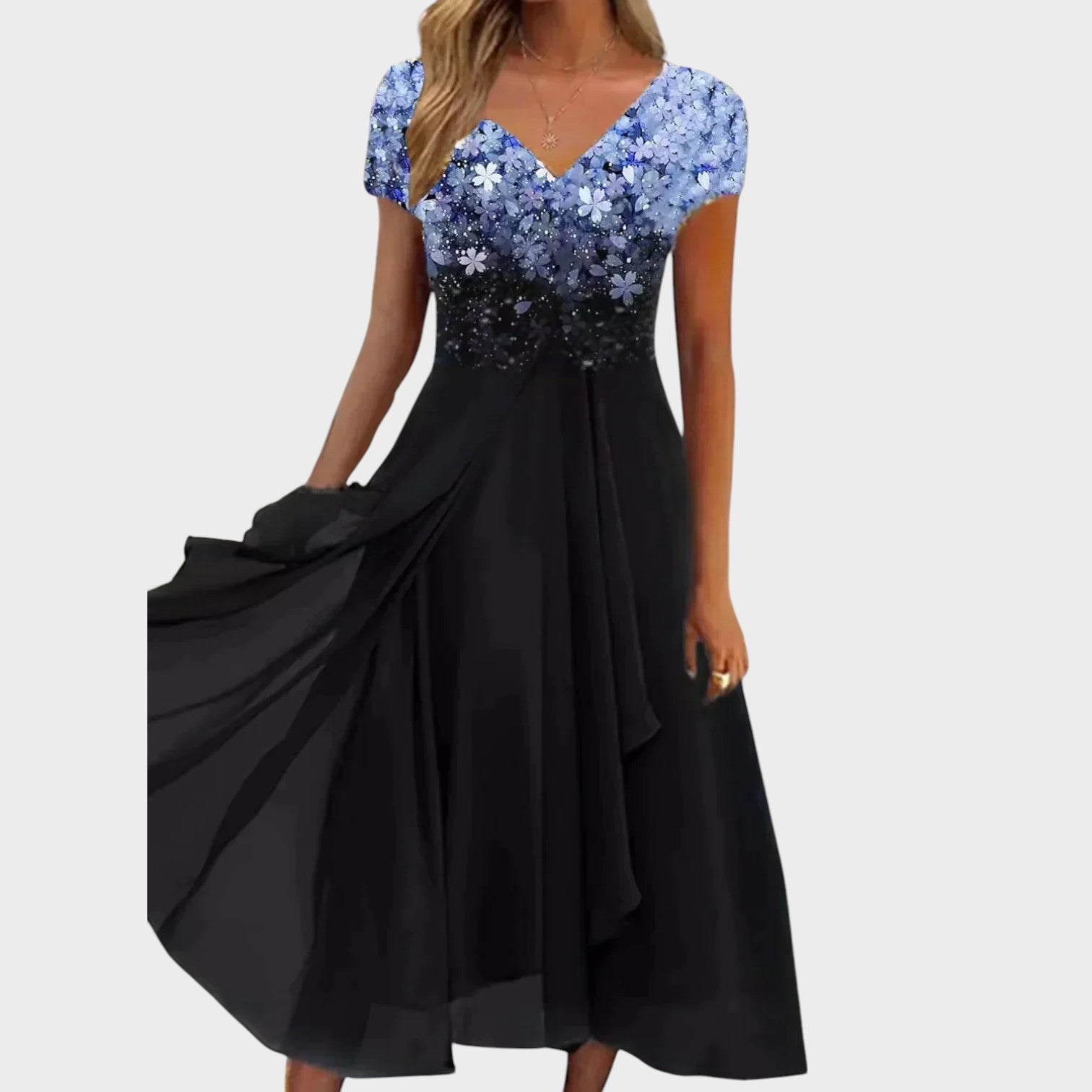 Amelia – Vestido com Decote Redondo e Padrão Floral