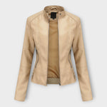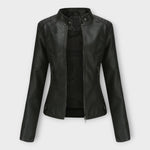 Elegante casaco de cabedal com linhas modernas e estética intemporal