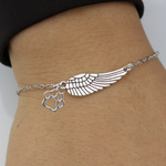Pulseira Memorial Prateada com Asas de Anjo e Impressão de Pata | Feita à Mão