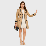 O fecho trespassado e o cinto ajustável na cintura criam um ajuste definido e feminino, enquanto o comprimento pelo joelho a torna perfeita para usar em camadas em diversas ocasiões. Uma peça versátil que realça qualquer look, do trabalho ao lazer.