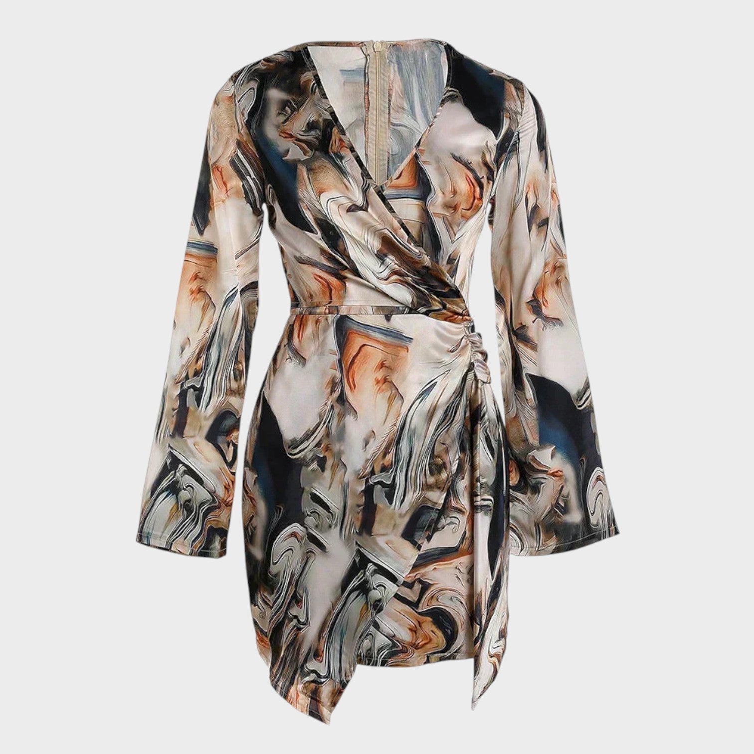Esse vestido é uma verdadeira obra-prima da moda — com recortes assimétricos, modelagem envelope e um acabamento acetinado que realça cada curva com sofisticação. A estampa abstrata traz personalidade e vibração, criando um visual impactante e contemporâneo. Ideal para mulheres que não passam despercebidas e amam expressar estilo com autenticidade.