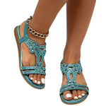 Estas sandálias turquesa com aplicação de pedrarias são a definição de elegância para os dias quentes. Com um design floral detalhado e acabamento cintilante, são ideais para dar um toque glamoroso ao teu look de verão. Confortáveis e femininas, combinam na perfeição com vestidos leves, saias ou calções, garantindo um estilo deslumbrante sem esforço.