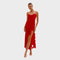 Com alças finas, decote suave e um elegante folho assimétrico na abertura lateral, transmite frescura, leveza e feminilidade. O tecido fluido abraça o corpo com suavidade, criando uma silhueta delicada e sensual. Ideal para casamentos, festas de verão ou escapadelas românticas.
