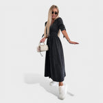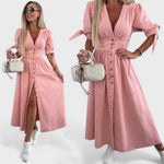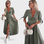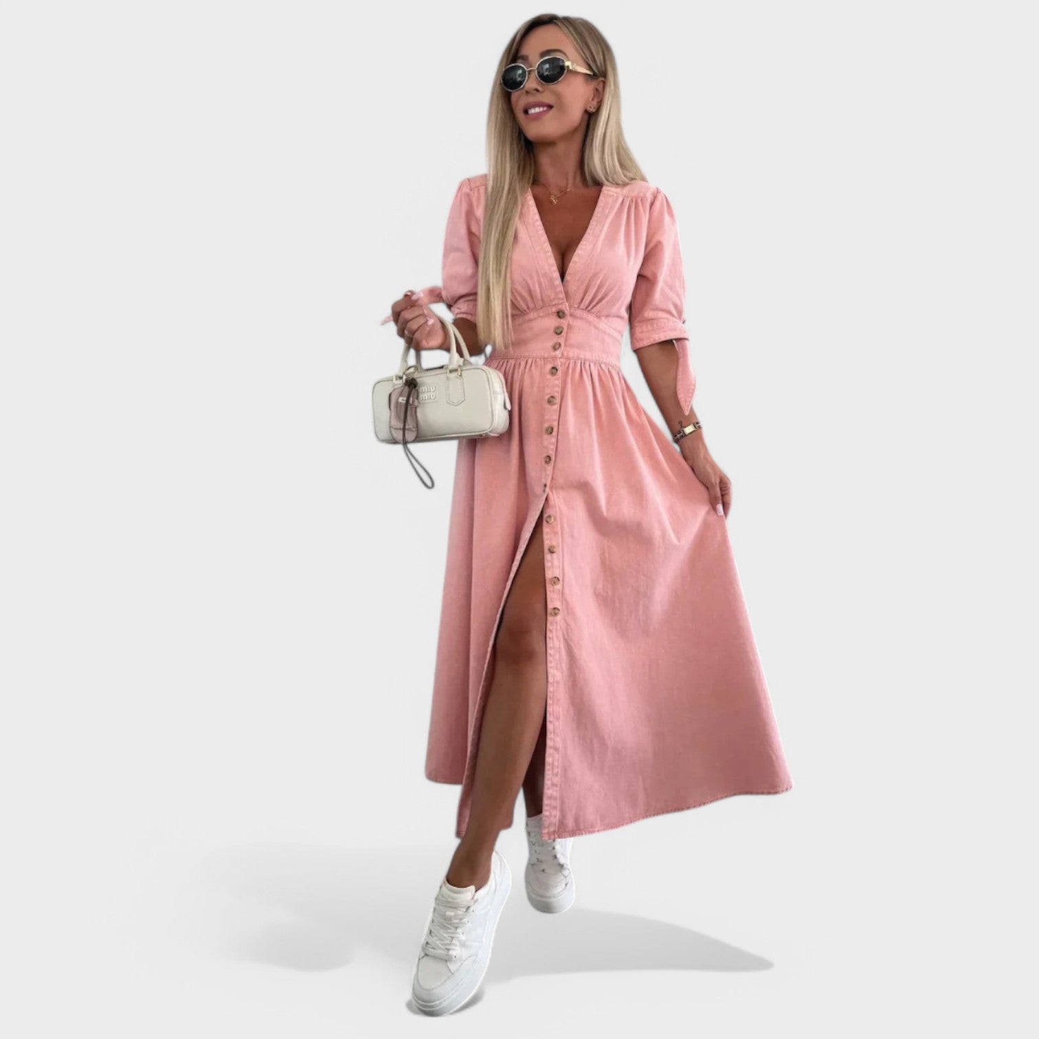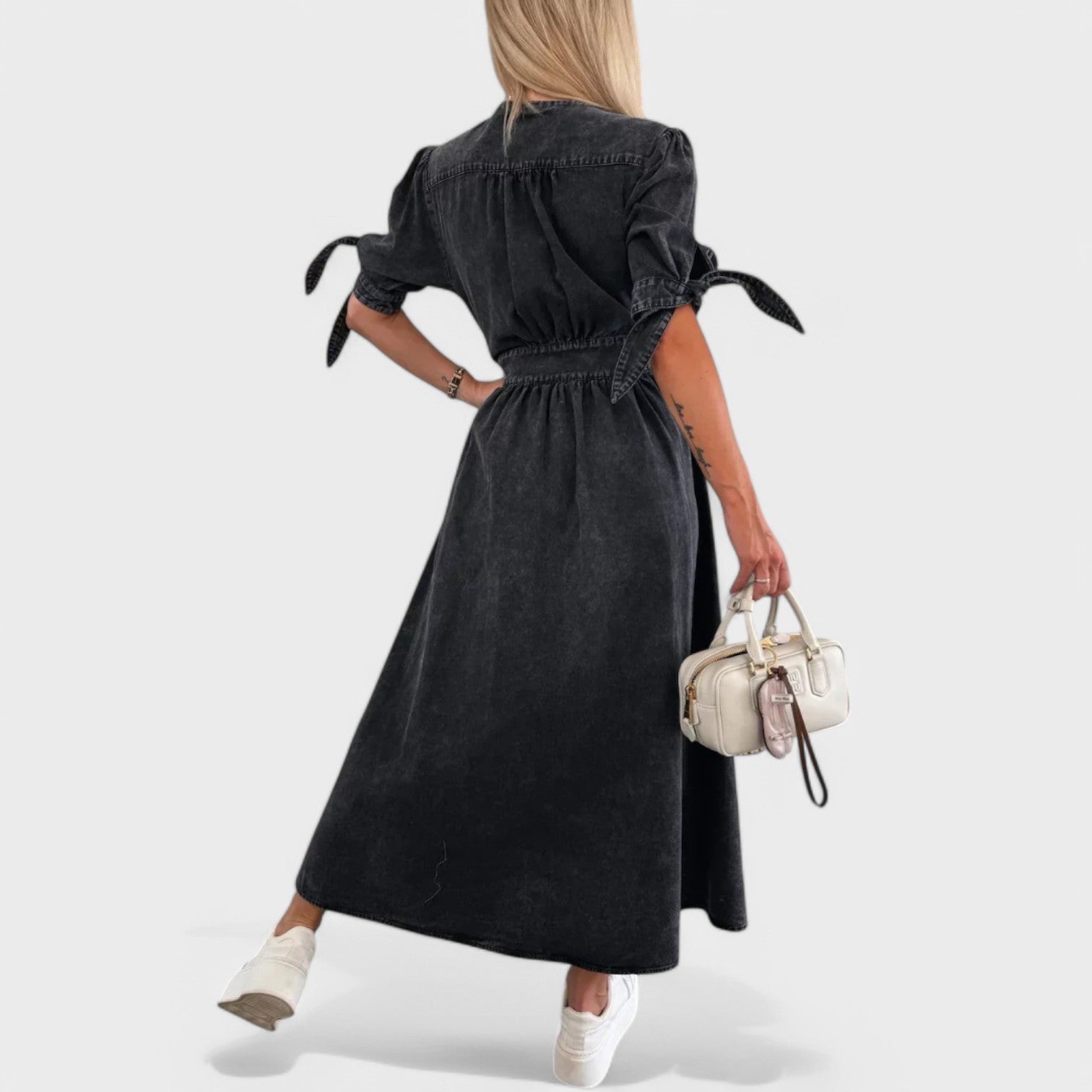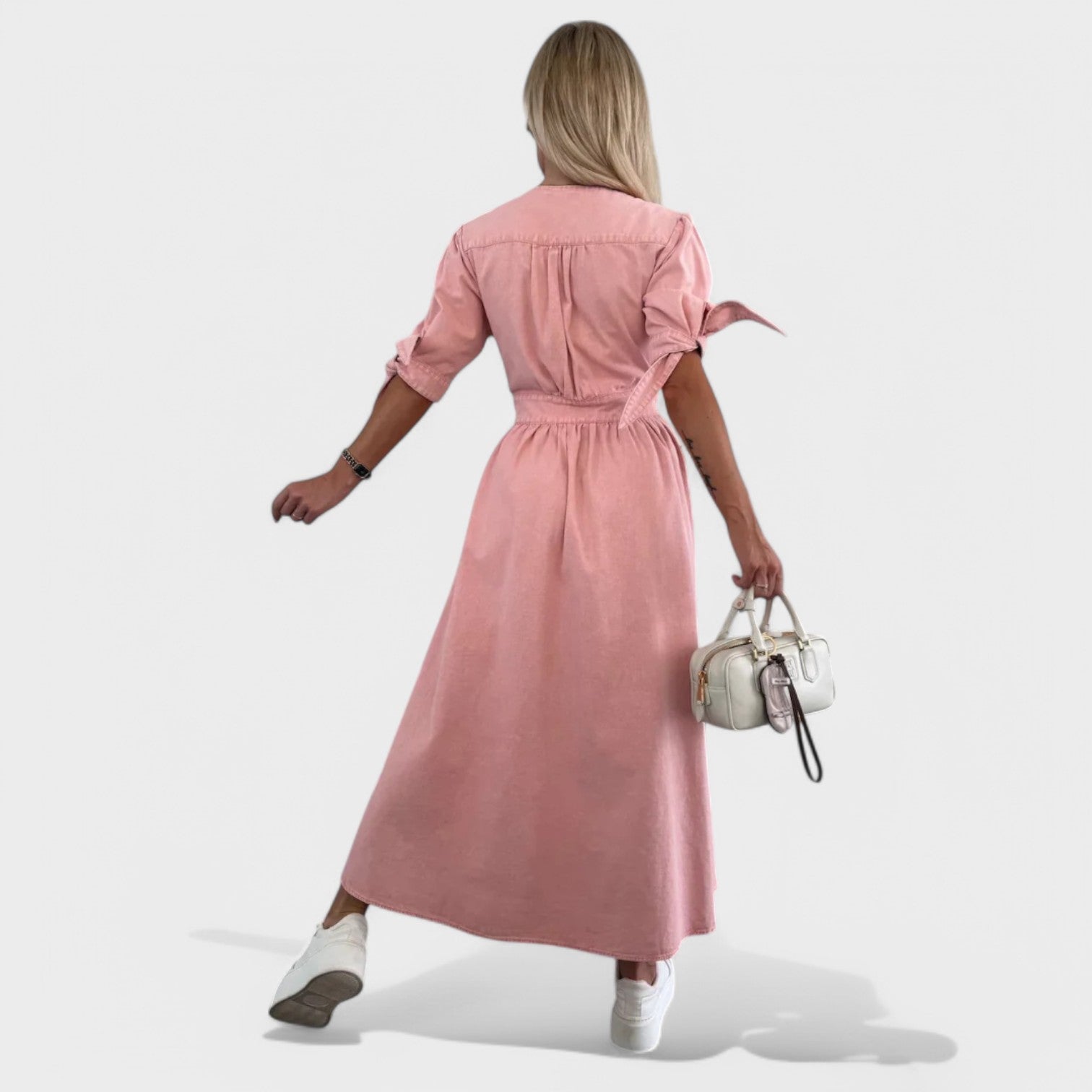 Quer também mostrar-se da sua melhor maneira? Aqueles momentos em que se sente completamente confortável e recebe elogio após elogio. Este vestido elegante faz exatamente isso por si! Com os seus botões de pressões e laços nas mangas, vai certamente atrair olhares!