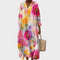 Inspirado no estilo boêmio, este vestido maxi é uma verdadeira obra de arte feita de tecido. Seu corte amplo e fluido proporciona liberdade e frescor em cada movimento. Com blocos de cores vibrantes e padrões de linhas assimétricas, destaca estilo e individualidade a cada passo.
