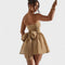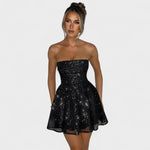 Com um toque de conto de fadas e a sensualidade no ponto certo, este mini vestido cai-cai foi feito para brilhar. A saia rodada em tecido leve oferece movimento e leveza, enquanto a parte superior estruturada realça a silhueta com elegância. Perfeito para festas, jantares ou ocasiões especiais em que queres deixar a tua marca.