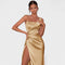 Este vestido longo em cetim com fenda profunda é a escolha perfeita para quem quer impressionar com elegância e atitude. Com um design assimétrico que realça as curvas, ele combina sensualidade e sofisticação na medida certa. Seja em um tapete vermelho, uma festa ou evento de gala, esta peça garante um visual marcante e inesquecível.