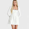 Decote com cristais: Decote quadrado com cristais brilhantes que refletem a luz com beleza.