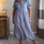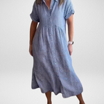 Descubra um vestido que combina conforto, estilo e sofisticação para o dia a dia. O seu padrão de riscas intemporal valoriza a sua silhueta, enquanto o tecido leve mantém-na fresca com facilidade. Perfeito tanto para os dias de trabalho como para os fins de semana, transita perfeitamente entre ocasiões. Uma peça versátil, concebida para trazer um charme requintado ao seu guarda-roupa.