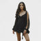 Este macacão preto é a definição de sofisticação moderna com um toque leve e fluido. O design com decote cruzado e mangas esvoaçantes traz feminilidade e movimento, enquanto o corte na cintura e o cinto de amarrar valorizam a silhueta de forma natural. Ideal para dias quentes e noites elegantes, esta peça versátil conjuga conforto e estilo numa harmonia perfeita. É a escolha certa para quem quer impressionar com classe e personalidade.