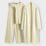 • Design elegante: Este conjunto de 3 peças – calças, cardigan e blusa – cria um look polido, perfeito para qualquer ocasião.
